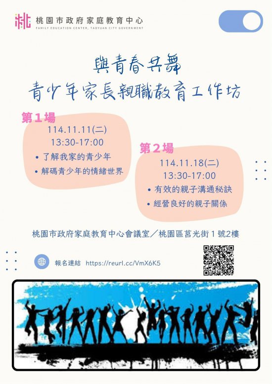 二、 旨揭課程詳細資訊,請見中心課程行事曆(https://reurl.cc/xlGyGL)或追蹤「桃園市政府家庭教育中心」FB粉絲專頁;另倘有家庭教育個別化服務需求,可撥打4128185家庭教育諮詢專線,本市市民可申請小桃家線上諮詢室(預約連結:https://reurl.cc/oZWOY5),由中心媒合專業人員透過線上會議室提供服務。