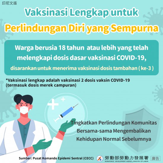 本府函轉勞動部為強化移工防疫,請督促所轄事業類雇主鼓勵移工接種新冠肺炎疫苗追加劑一案,詳如說明,請查照。